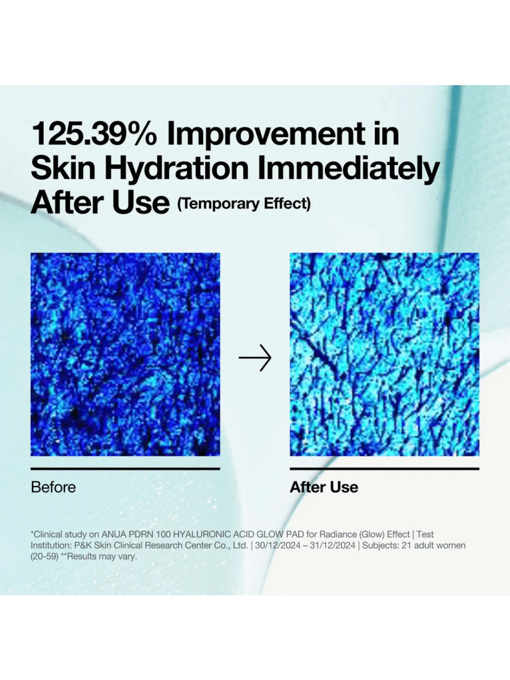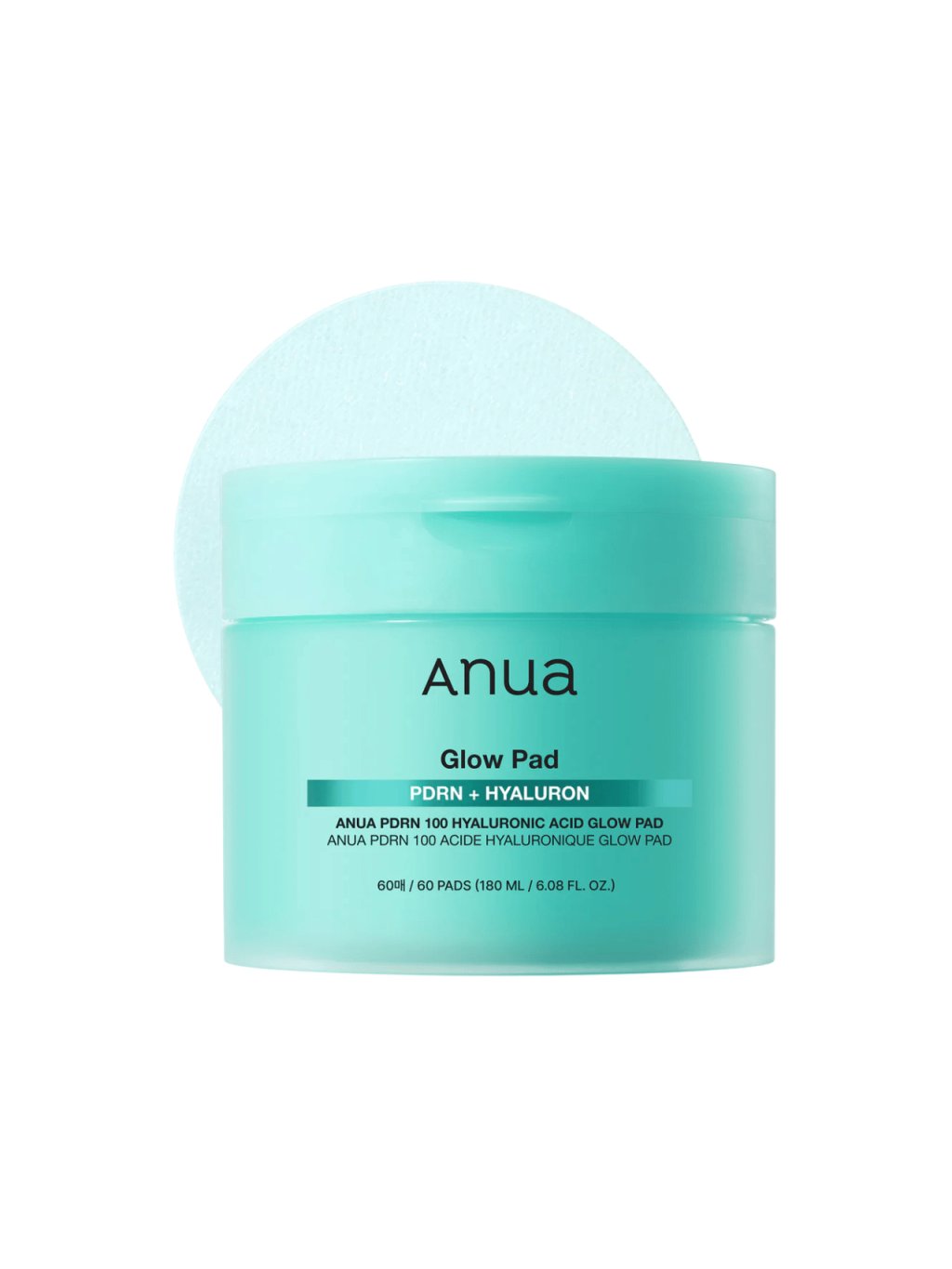 Rozjasněte, vyživte a vypněte svou pleť pomocí extra hydratačního polštářku ANUA PDRN Hyaluronic Glow Pad - praktických tonizujících čípků v balení po 60 kusech.