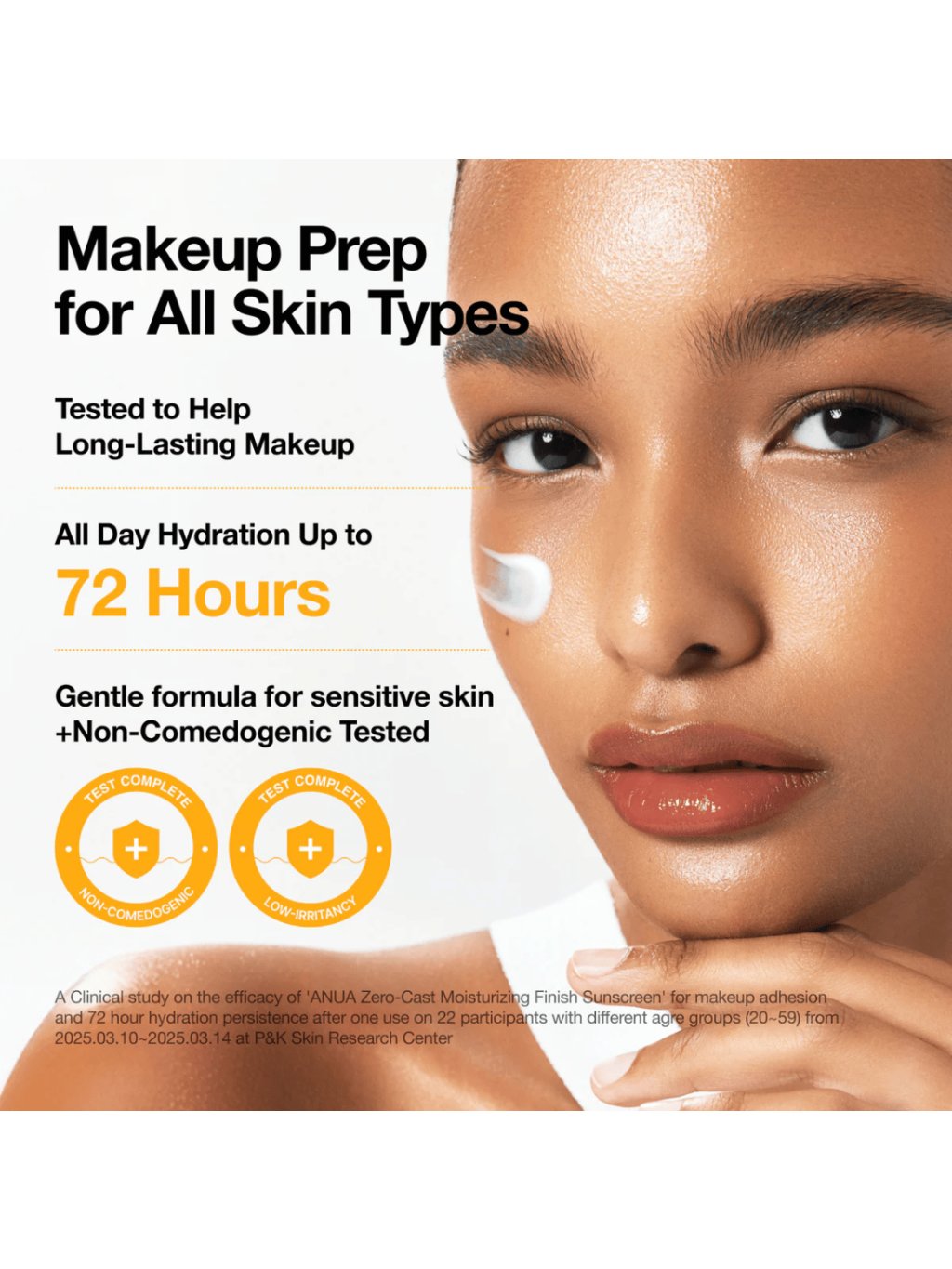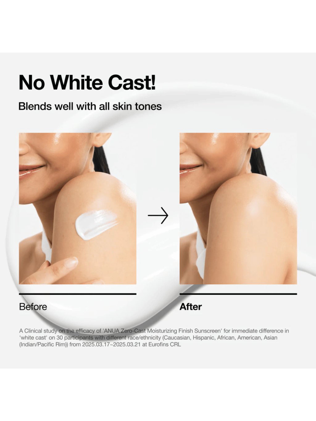Pokud hledáte opalovací krém s ochranným faktorem, který nezanechává bílý závoj, nelepí se a dodává vaší pleti krásný zářivý vzhled, bude Zero-Cast Moisturizing Finish Sunscreen vaším novým řešením. ANUA vsadila na moderní, příjemný pocit na pokožce a osvědčenou ochranu SPF 50. Chemické UV filtry avobenzon, homosalát, oktisalát a oktokrylen spolehlivě chrání před UVA i UVB zářením, zatímco hydratační péče se stará o to, abyste se na pokožce cítili skvěle po celý den. Ve složení najdete glycerin a hyaluronát sodný pro dlouhotrvající hydrataci, niacinamid pro sjednocení tónu a panthenol pro zklidnění. Krém se roztírá jako sen, nedělá žádné žmolky, okamžitě splyne s pokožkou a zanechá ji pružnou a zářivou. Je voděodolný až 80 minut, oceníte ho při aktivních dnech a na dovolené, ale stejně dobře se hodí i pod make-up do města. Praktická odměrka ve víčku vám navíc pomůže nanést přesně takové množství, aby ochrana fungovala na 100 %. Hydratační krém na opalování Zero-Cast Moisturizing Finish je ten typ SPF, po kterém automaticky sáhnete každé ráno, protože je pohodlný, spolehlivý a jednoduše lichotí vaší pokožce.
