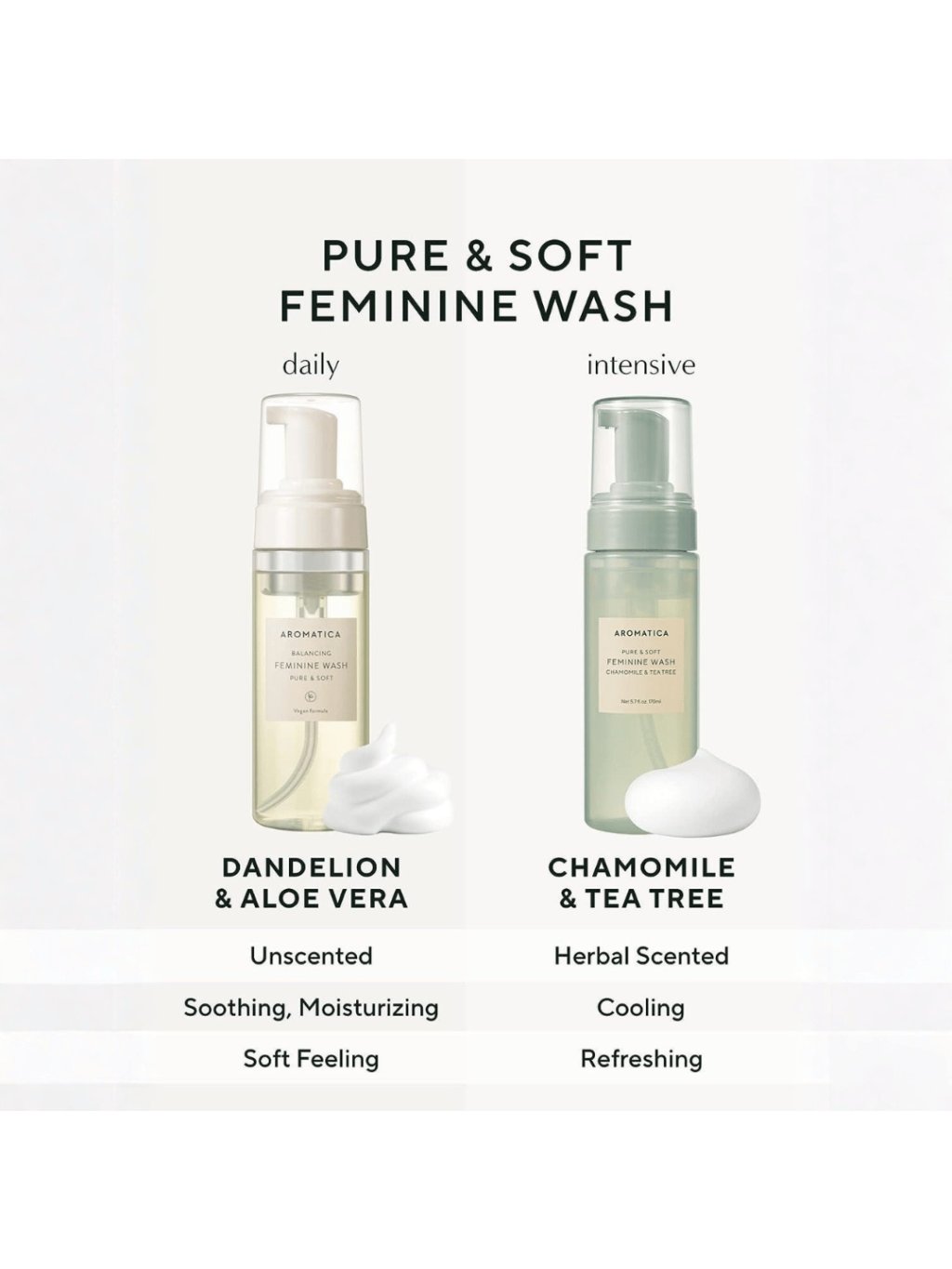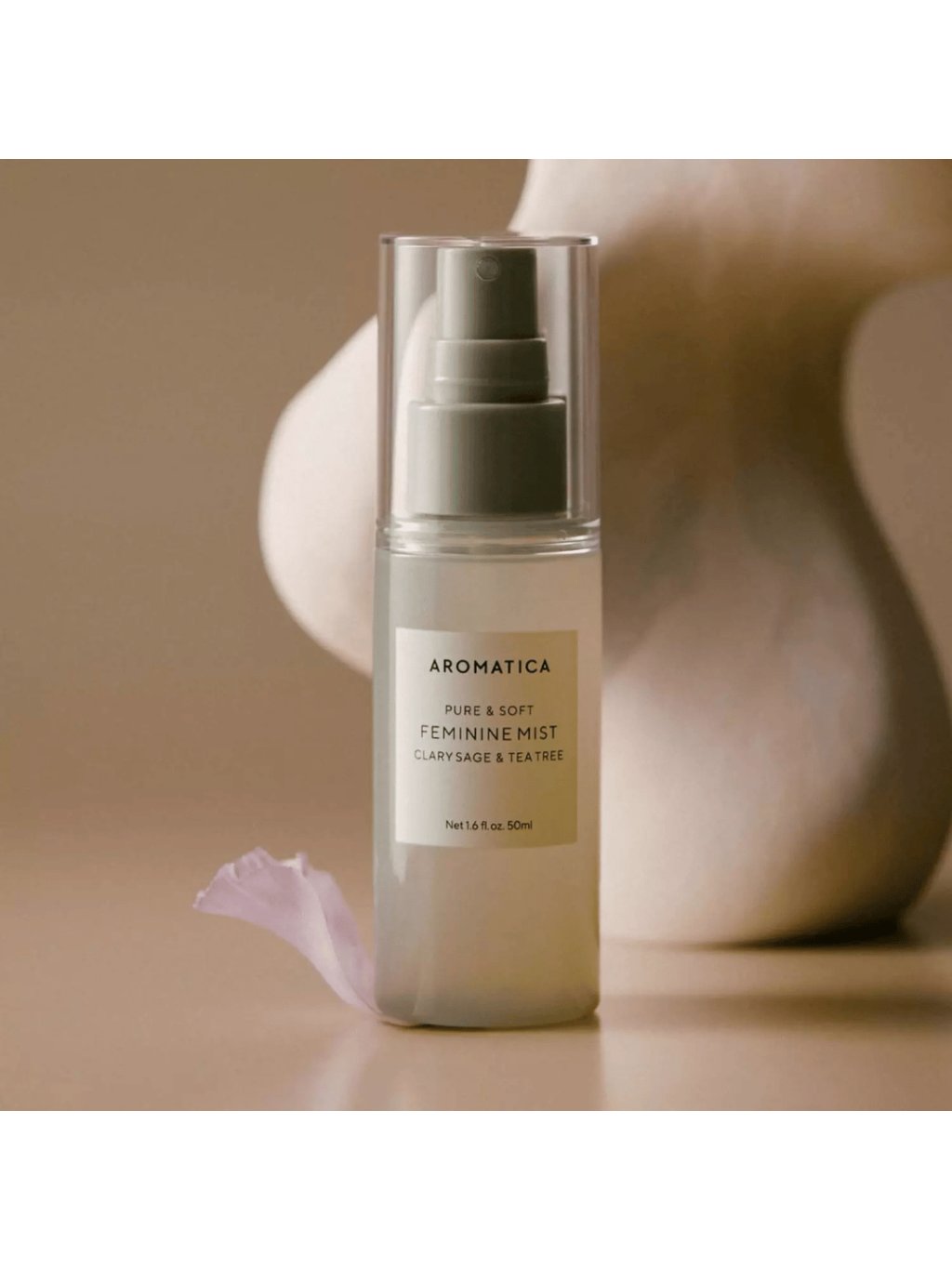 ⭐️Pro tip: Používejte AROMATICA - Pure & Soft Feminine Mist Clary Sage & Tea Tree jako rychlé osvěžení po mytí - ideální ráno a během dne; předtím zvolte jemný čisticí přípravek s nízkým pH a následně lehkou hydrataci pro větší komfort.