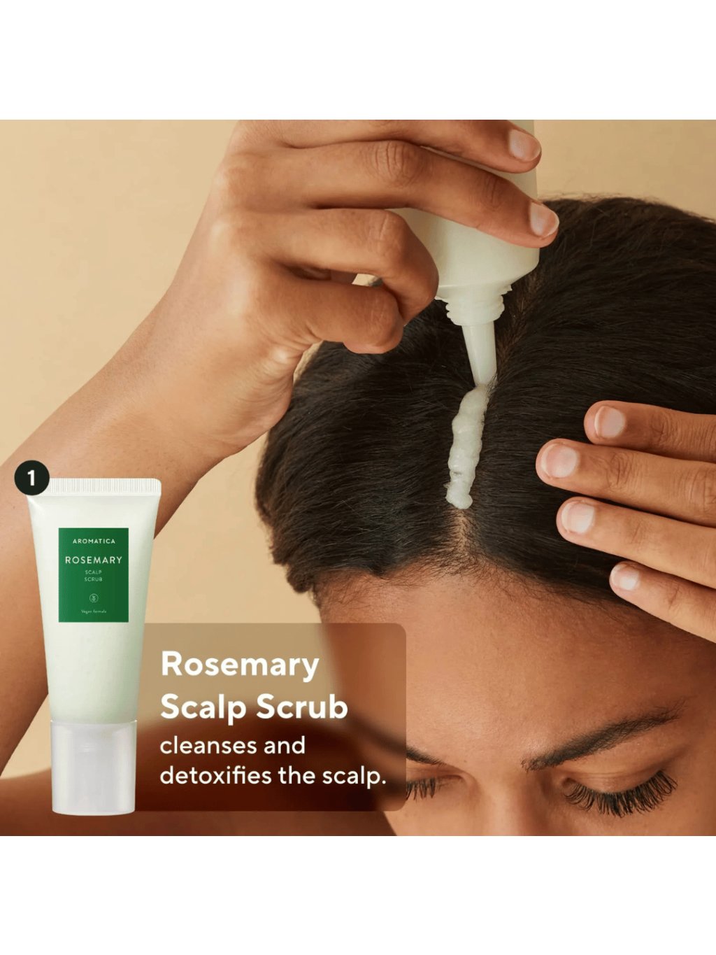 AROMATICA - Rosemary Scalp Scaling Trial Kit - Cestovní sada pro zdravou pokožku hlavy s rozmarýnem 4 ks