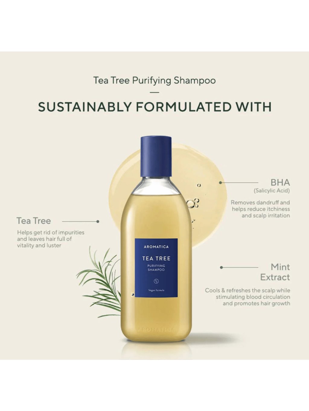 AROMATICA - Tea Tree Purifying Shampoo - Čisticí šampon s tea tree a BHA pro mastnou pokožku hlavy 400ml