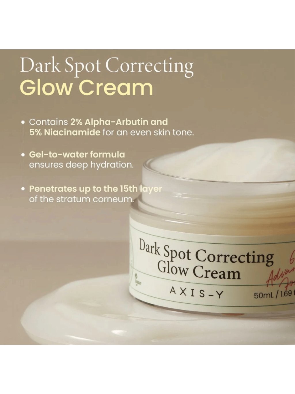 AXIS-Y - Dark Spot Correcting Glow Cream - Rozjasňující krém proti pigmentovým skvrnám s niacinamidem a arbutinem 50ml