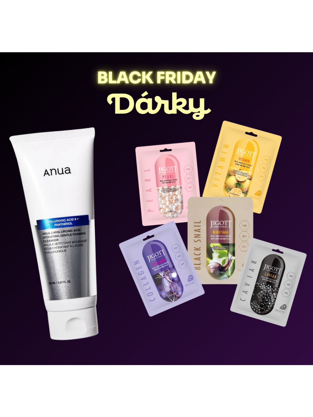 Black Friday dárkový set: ANUA 8 Hyaluronic Acid Hydrating Gentle Foaming Cleanser 150 ml + 5 plátěných masek JIGOTT (perlová, vitamínová, kolagenová, kaviárová a maska s extraktem ze šneka) pro čistou, hydratovanou a rozzářenou pleť. Produkt není samostatně prodejný, je dárkem k objednávkám nad 1199 CZK.
