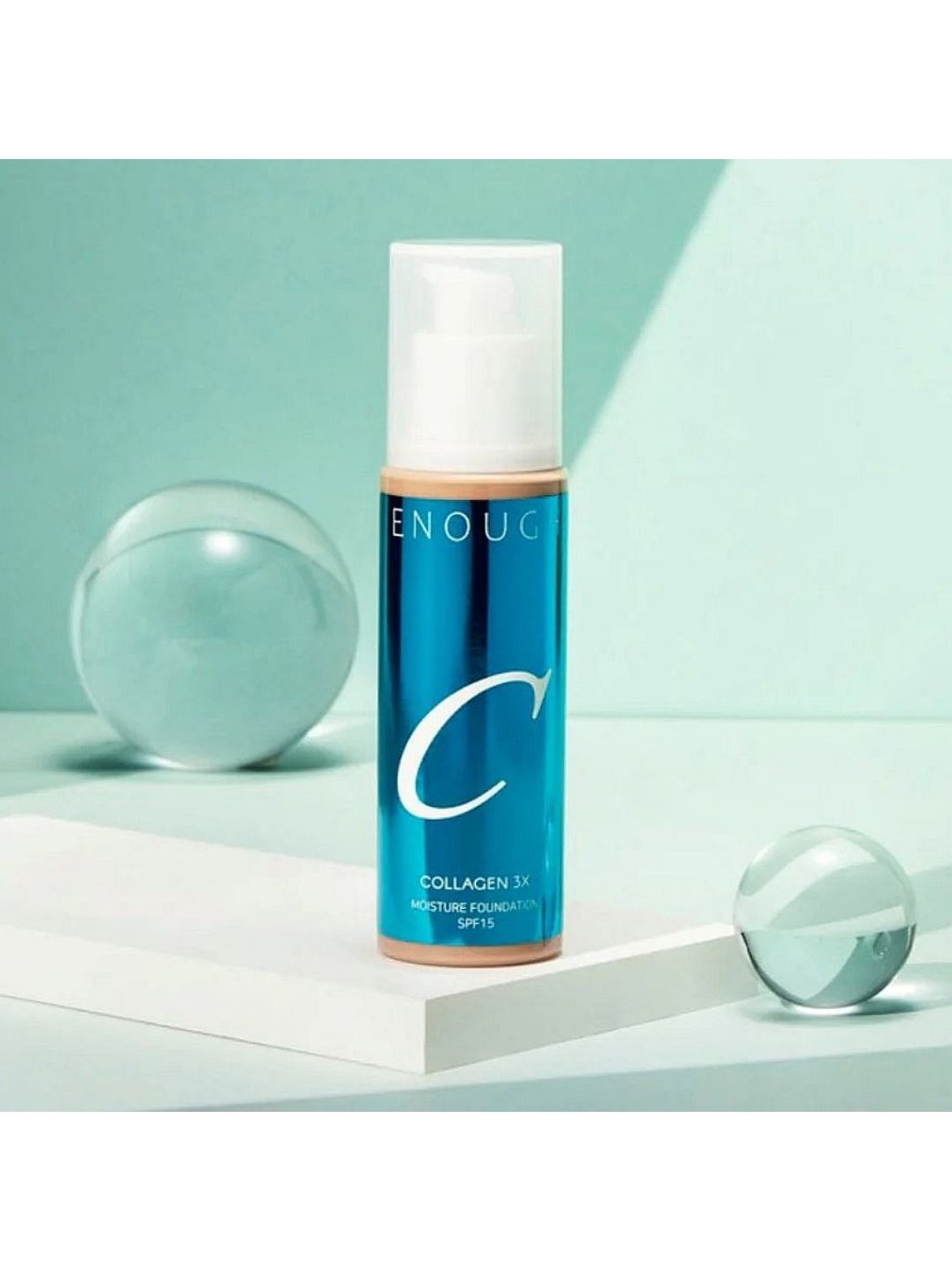 ENOUGH Collagen 3X Moisture Foundation SPF15 č. 21N má jemnější krytí a zaměřuje se na hydrataci a přirozený vzhled pleti. Obsahuje trojitý kolagenový komplex, který hloubkově hydratuje a zlepšuje pružnost pleti. Je skvělý pro suchou, dehydratovanou nebo zralejší pleť, která po aplikaci vypadá svěže a hydratovaně. Je oblíbený u příznivců přirozeného líčení a korejského vzhledu "skleněné pleti" - tedy vzhledu porcelánové pleti.