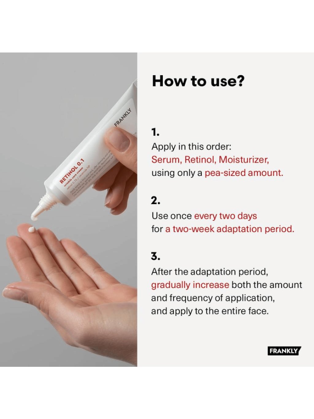 ⭐️Pro tip: Používejte jej večer - před retinolem naneste hydratační esenci/sérum a poté jej zafixujte příjemnou noční maskou nebo ochranným krémem.