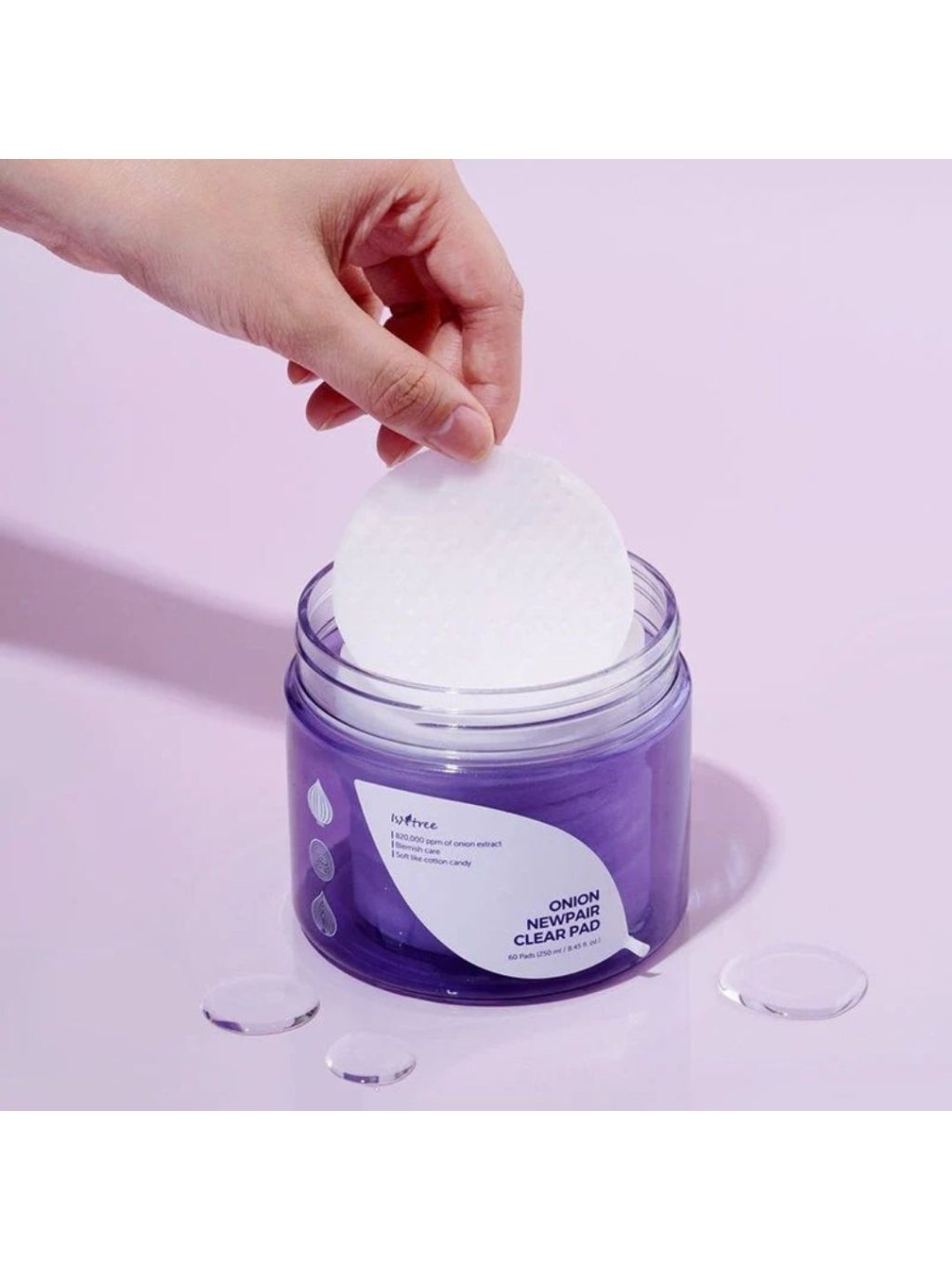 Čisticí tampony ISNTREE Onion Newpair Clear Pad s výtažkem z cibule okamžitě zklidňují záněty pleti, redukují tmavé skvrny a hyperpigmentaci a rozjasňují pleť. Tampony obohacené o výtažek z červené cibule (obsahuje 30 až 40krát bohatší živiny než běžná cibule) a niacinamid ošetří jizvy po akné a rozjasní podrážděnou pleť.