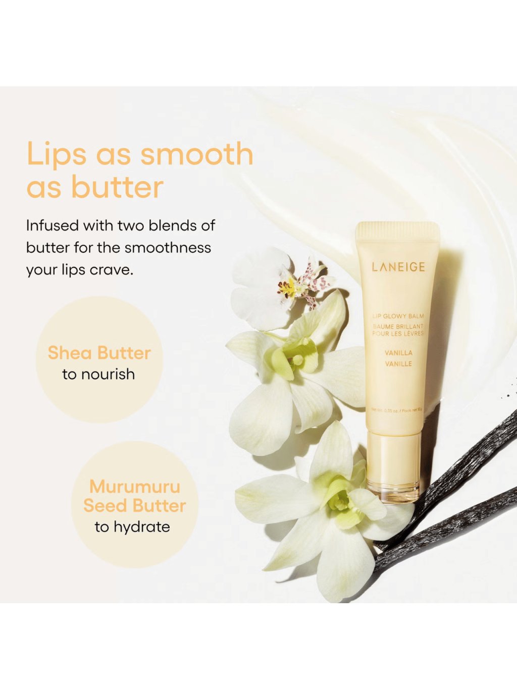 Hýčkejte své rty leskem a intenzivní hydratací - LANEIGE Lip Glowy Balm Vanilla okamžitě zjemňuje, vyhlazuje a rozjasňuje krémovou vanilkou.