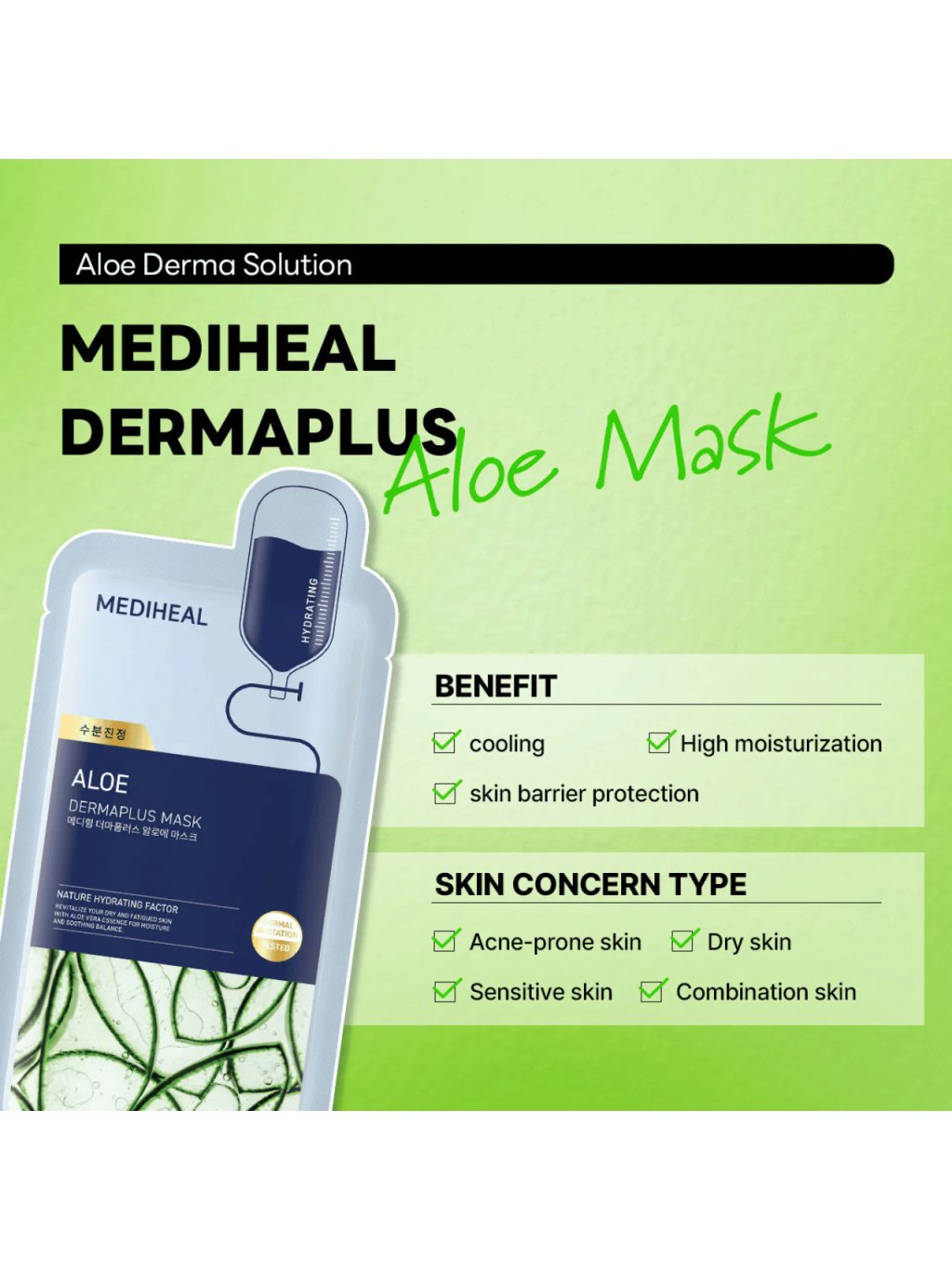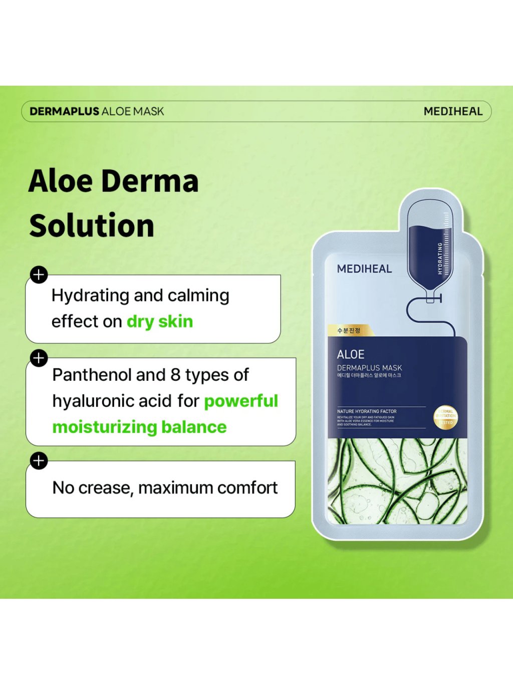 MEDIHEAL - Dermaplus Aloe Mask - Zklidňující maska s aloe, ektoinem a 8 druhy hyaluronu 22ml