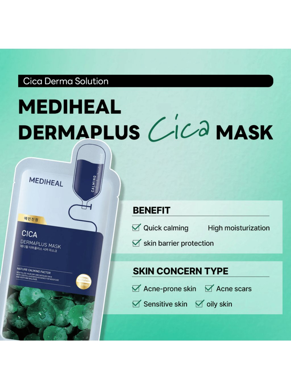 MEDIHEAL - Dermaplus Heartleaf Mask - Zklidňující pleťová maska s houttuynií a hyaluronem 22ml