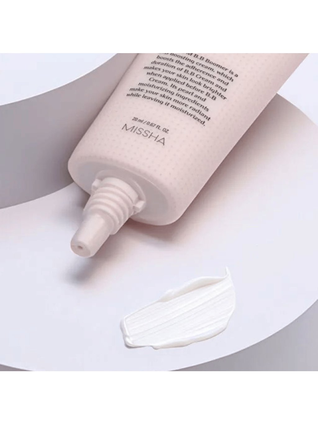 Hledáte jemný trik, díky kterému bude vaše pleť vypadat jako po filtrování, ale živá? MISSHA M BB Boomer je korejská báze, která z vašeho BB krému vytěží maximum. Funguje jako chytrá podkladová báze, která zvýší přilnavost a prodlouží výdrž vašeho make-upu a zároveň okamžitě rozjasní vaši pleť růžovo-perleťovým efektem a zjemní nerovnosti. Díky hydratační kombinaci glycerinu a skvalanu klouže po pleti krémově lehce, nezanechává lepivý pocit a vytváří příjemný, orosený vzhled. Niacinamid pomáhá rozjasnit matný tón pleti a opticky ji sjednotit, zatímco adenosin podporuje vyhlazení jemných vrásek. Jedinečná směs perleťového a diamantového pudru, rubínu a ametystu dodává pleti zdravý lesk bez efektu masky. Moringový olej navíc pomáhá vytvářet ochranný hydrofilm, takže podkladová báze vydrží po celý náročný den. M BB Boomer je dlouhodobým miláčkem K-beauty, ke kterému se ženy vracejí, protože v jednom kroku vyhlazuje póry, rozjasňuje a udržuje BB krém na svém místě. Pokud chcete mít přirozeně svěží pleť, která vypadá skvěle naživo i na fotkách, je to váš nový základní produkt.