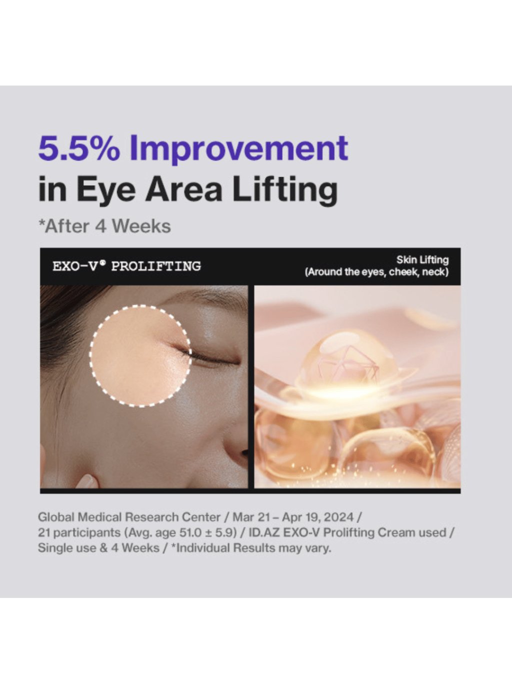 id EXO-V ProLifting Cream je váš nový tajný trik pro pevnější kontury a hladší pleť bez námahy. Tento krém kombinuje pokročilé kosmetické technologie s promyšleným složením pro každodenní použití - najdete v něm extracelulární vezikuly Lactobacillus (exosomy), niacinamid, ceramid NP, cholesterol, skvalan a DNA sodnou s hydratační kombinací glycerin + hyaluronát sodný + betain + trehalóza. Exozomy působí jako inteligentní "poslové", kteří podporují obnovu a komfort pleti, Niacinamid sjednocuje tón a vyhlazuje texturu, zatímco Ceramidy se Squalanem posilují kožní bariéru. Textura je sametová, rychle se vstřebává a zanechává pouze jemný, zdravý lesk - žádnou tíhu. Díky polyquaternium-51 a lipidovým zvláčňujícím látkám (kaprylový/kaprový triglycerid, hydrogenovaný polydecen) udržuje pleť dlouhodobě hydratovanou a pružnou. Jako bonus obsahuje adenosin pro vyhlazení jemných vrásek a NAD pro "energetickou vzpruhu" pleti. Pokud toužíte po jasnější, pevnější a komfortnější pleti bez podráždění, tento krém se vám bude hodit jako poslední krok v péči o pleť ráno a večer.