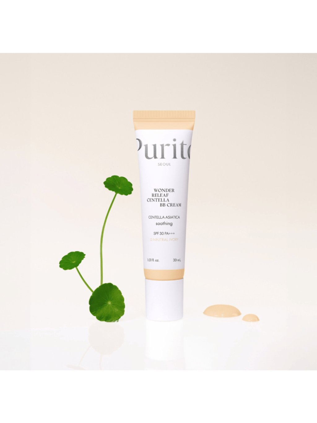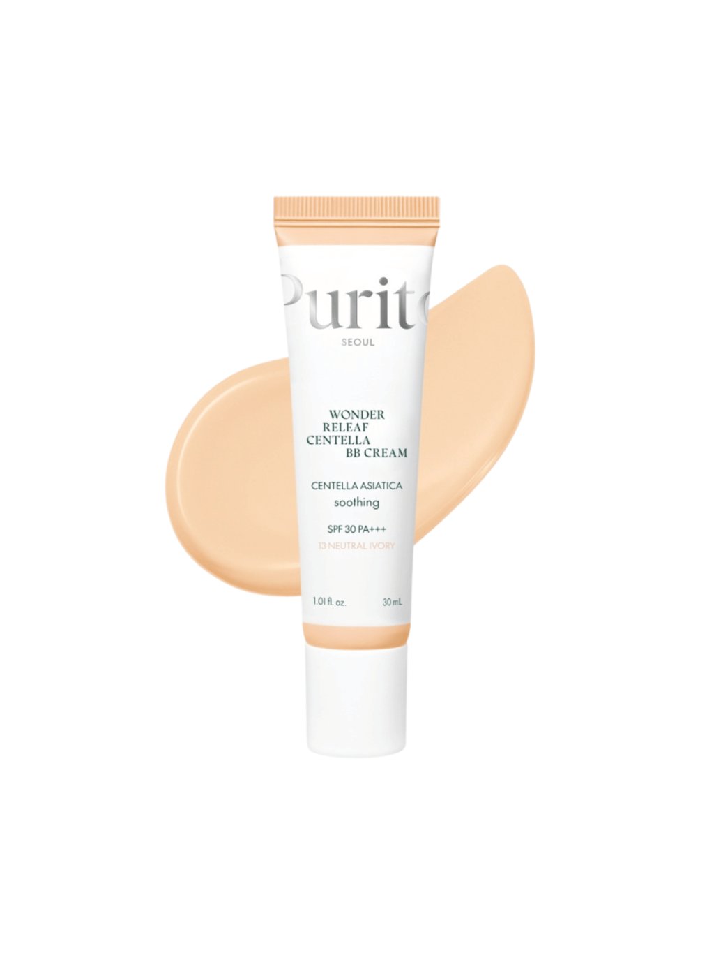 Ráno, když chcete všechno stihnout a přitom vypadat svěže, sáhněte po BB krému Wonder Releaf Centella. Tento ikonický BB krém od PURITO SEOUL spojuje to nejlepší z korejské péče o pleť a přírodního líčení v jednom kroku. Lehká, krémově tekutá textura se doslova rozplývá v pleti, vyrovnává tón pleti a zjemňuje póry bez efektu masky. **Minerální UV filtry oxid titaničitý a oxid zinečnatý poskytují ochranný faktor SPF 30 PA+++**, takže můžete svou pleť chránit před každodenním sluncem a snadno provádět svou digitální rutinu. O pleť pečuje **výtažek z centely asijské v množství 14 750 ppm**, který zklidňuje zarudnutí a nepříjemné pocity, zatímco **niacinamid** jemně rozjasňuje a podporuje rovnoměrný vzhled pleti. **Panthenol a alantoin** dodávají pleti komfort a pomáhají posilovat kožní bariéru, zatímco **Adenosin** podporuje hladší a pružnější vzhled. Výsledkem je jemná, přirozeně zářivá pleť, která vypadá stejně jako vaše pleť - jen lépe. Odstín **Neutral Ivory n.13** je ideální pro světlé, neutrální podtóny - dokonale se mísí a lze jej vrstvit od jemného rovnoměrného až po střední krytí. BB krém **Wonder Releaf Centella** je bez parfemace, šetrný i k citlivé pleti a má moderní složení s důrazem na celodenní komfort. Pokud trávíte hodně času venku, aplikujte pod něj plnohodnotný SPF - v opačném případě si užijte jeho všestrannost jako rychlého univerzálního podkladu pro krásnou pleť.