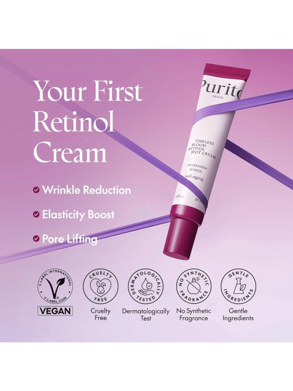 PURITO - Timeless Bloom Retinol Spot Cream - Lokální retinolový krém s bakuchiolem na vrásky a nedokonalosti 30ml